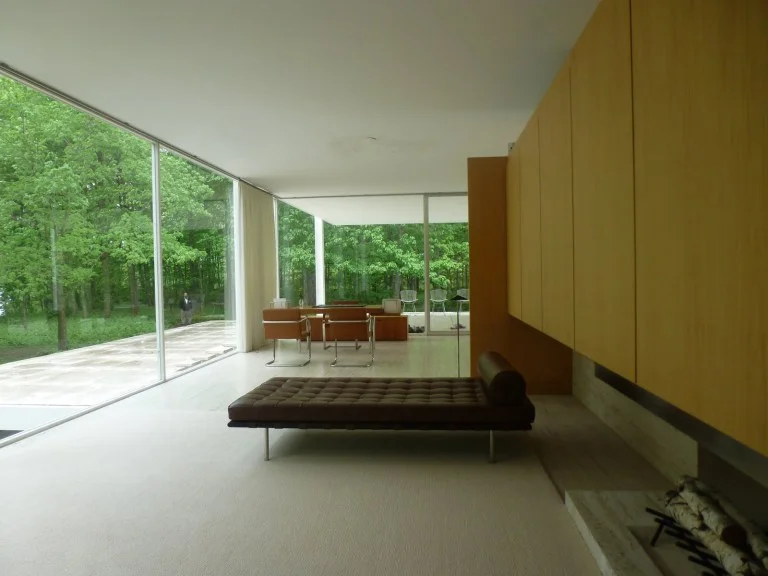 Su estructura de acero y vidrio, aparentemente frágil, desafía las nociones tradicionales de vivienda. Mies van der Rohe diseñó espacios diáfanos, sin divisiones internas, creando una fluidez entre habitaciones y permitiendo que la luz penetre sin obstáculos.